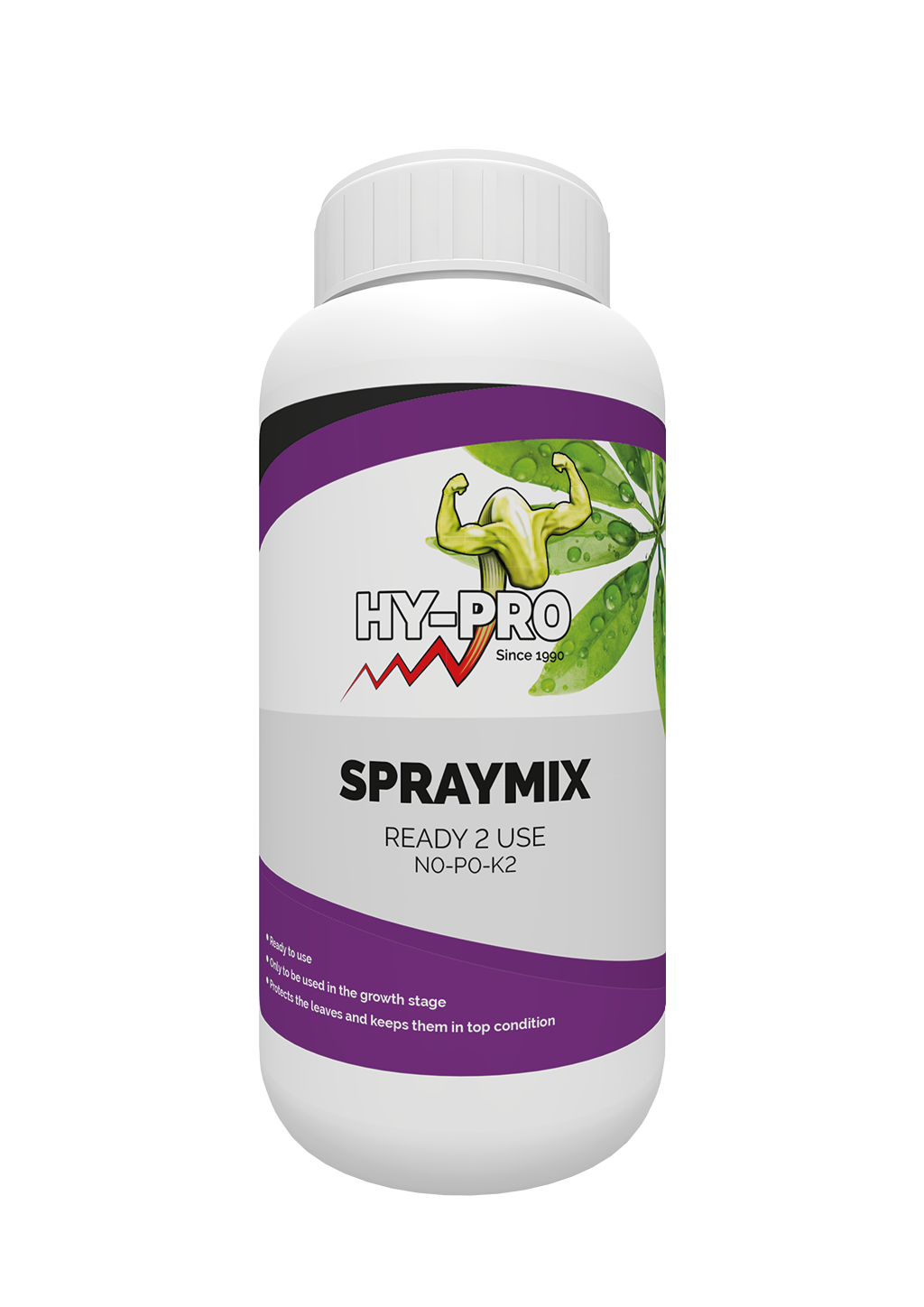 HY-PRO Spraymix contains all high-quality ingredients. The product is unique in its composition and the positive effects are quickly noticeable. HY-PRO recommends mixing the product in a ratio of 1:100. This means 5 ml of spray mix per litre of water. Then shake vigorously and spray the leaves. Once the spray mix has been stirred in, it should be used all at once, as storing it as a dilution has an effect on the composition.
